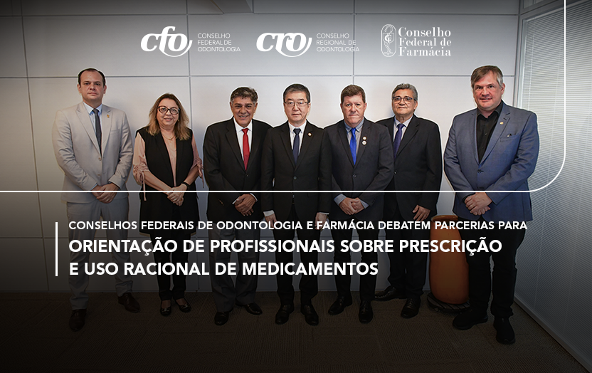 O Conselho Federal de Odontologia (CFO) e os Conselho Federal de Farmácia (CFF) realizaram, no dia 23 de julho, uma reunião institucional com objetivo de reafirmar a parceria bem-sucedida entre cirurgiões-dentistas e farmacêuticos em pautas que possam contribuir para melhor qualificar a duas profissões na assistência à população. A partir do encontro, foram realizados alinhamentos para colaboração, cooperação e compartilhamento de conhecimento em dois eixos principais: orientações na prescrição de medicamentos para uso odontológico e educação para o uso racional de medicamentos.